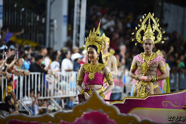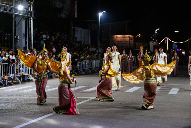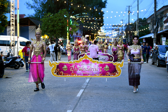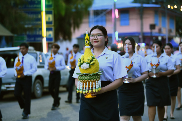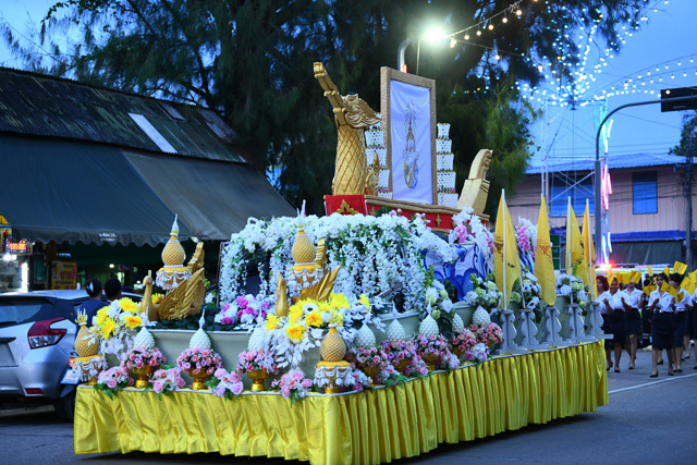 2. ขบวนเฉลิมพระเกียรติพระบาทสมเด็จพระปรเมนทรรามาธิบดีศรีสินทรมหาวชิราลงกรณ พระวชิรเกล้าเจ้าอยู่หัว เพื่อสะท้อนความภาคภูมิใจในวัฒนธรรมท้องถิ่นที่ถ่ายทอดด้วยความศรัทธาและความรักในสถาบันกษัตริย์