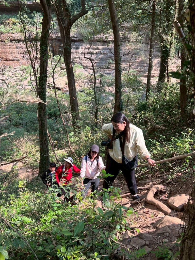 เมื่อวันที่ 16 มกราคม 2569 สำนักศิลปะและวัฒนธรรม มหาวิทยาลัยราชภัฏเพชรบูรณ์ โดยนักวิชาการวัฒนธรรม พร้อมด้วยนักวิชาการช่างศิลป์ ลงสำรวจแหล่งธรรมชาติและศิลปกรรมท้องถิ่น ในพื้นที่ตำบลโคกมน อำเภอน้ำหนาว จังหวัดเพชรบูรณ์ เพื่อเป็นการเก็บรวบรวมข้อมูลสำหรับจัดทำองค์ความรู้ และต่อยอดในการทำแผ่นพับส่งเสริมการท่องเที่ยวท้องถิ่นของอำเภอน้ำหนาว ไม่ว่าจะเป็น น้ำตกตาดฟ้า รอยตีนไดโนเสาร์(ตำบลโคกมน) น้ำตกตาดทิดมี น้ำตกตาดใหญ่ และยังมีสถานที่ท่องเที่ยวทางธรรมชาติที่น่าสนใจซึ่งจะได้เก็บข้อมูลเพิ่มเติมในโอกาสต่อไป ทั้งนี้ ได้รับความร่วมมือจากองค์การบริหารส่วนตำบลโคกมน โดยมีนายศรัณย์ บุณยมณี เจ้าพนักงานพัฒนาชุมชนปฏิบัติงาน นายภคพงษ์ สีตา ผู้ช่วยนายช่างโยธา พร้อมด้วยผู้ช่วยผู้ใหญ่บ้าน กฤษฎา แสงกันยา (โหน่ง) เป็นผู้นำทีมสำรวจพื้นที่ในครั้งนี้ค่ะ