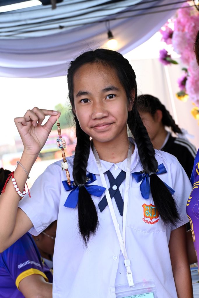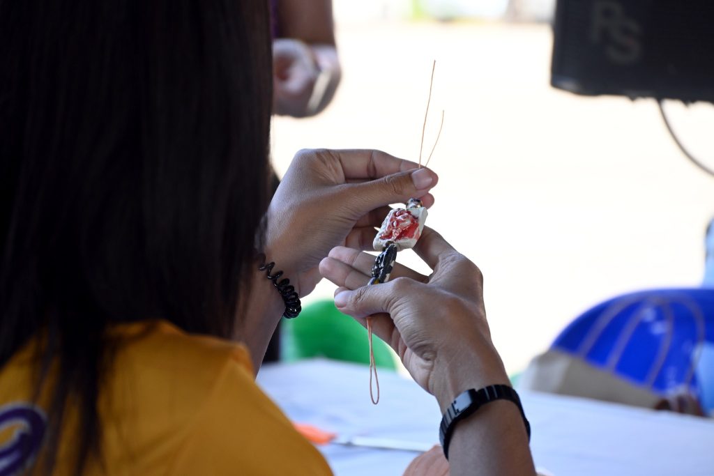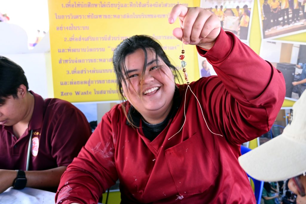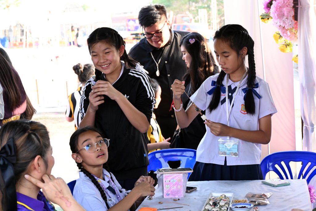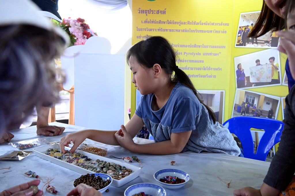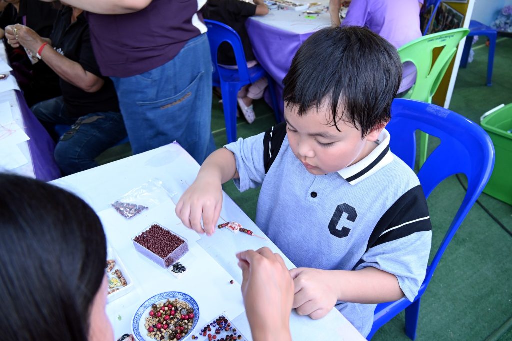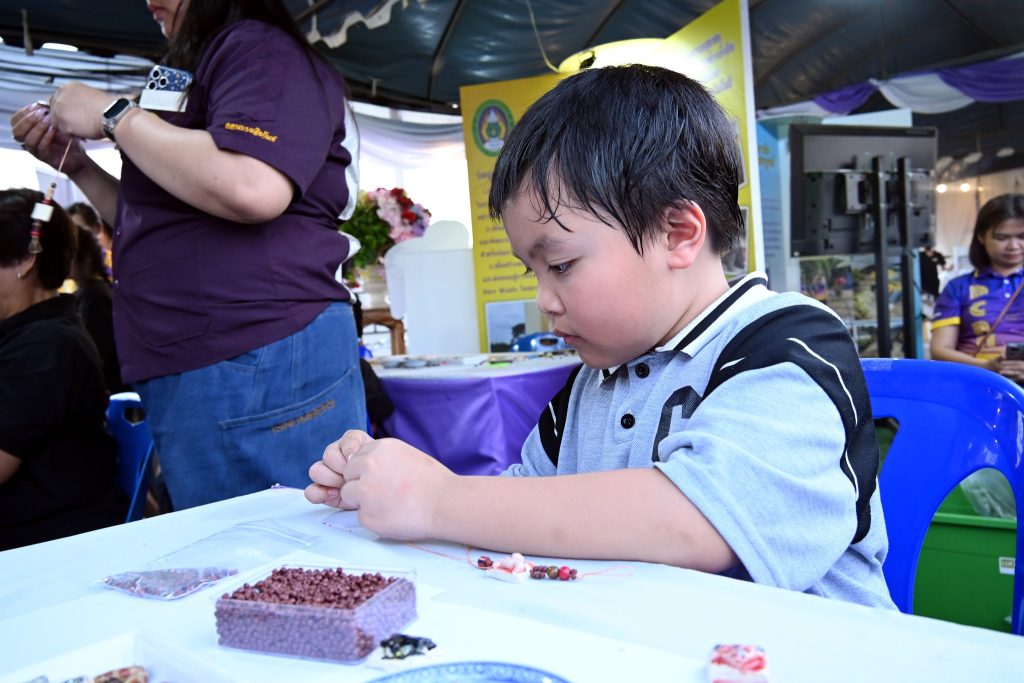 ซึ่งกิจกรรมนี้ได้รับความสนใจเป็นอย่างดีทีเดียวค่ะ ไม่ว่าจะเป็นน้องๆ นักเรียน นักศึกษาที่มากันเป็นกลุ่ม คุณพ่อคุณแม่ที่พาลูกมานั่งร้อยลูกปัดกันเพลินๆ ได้ฝึกสมาธิ และความคิดสร้างสรรค์ ที่สำคัญกิจรรมนี้ยังได้แทรกเรื่องราวของลูกปัดอัตลักษณ์ของศรีเทพเมืองมรดกโลกให้ทุกคนได้รู้จักมายิ่งขึ้นด้วยค่ะ