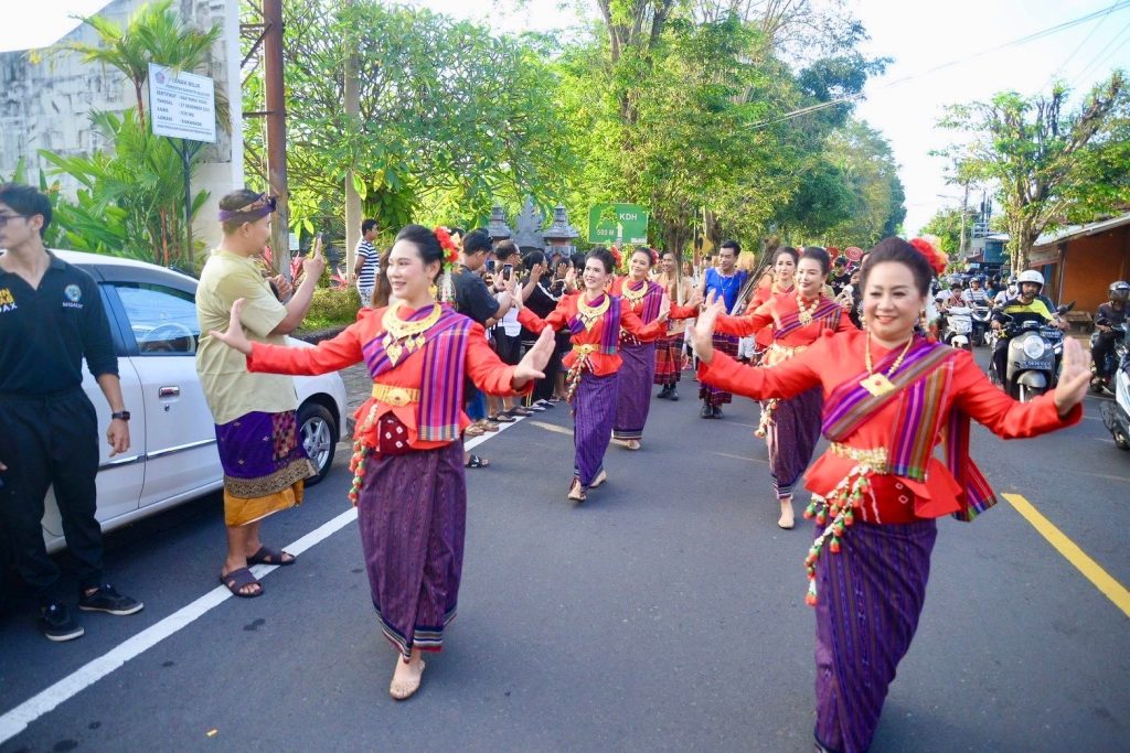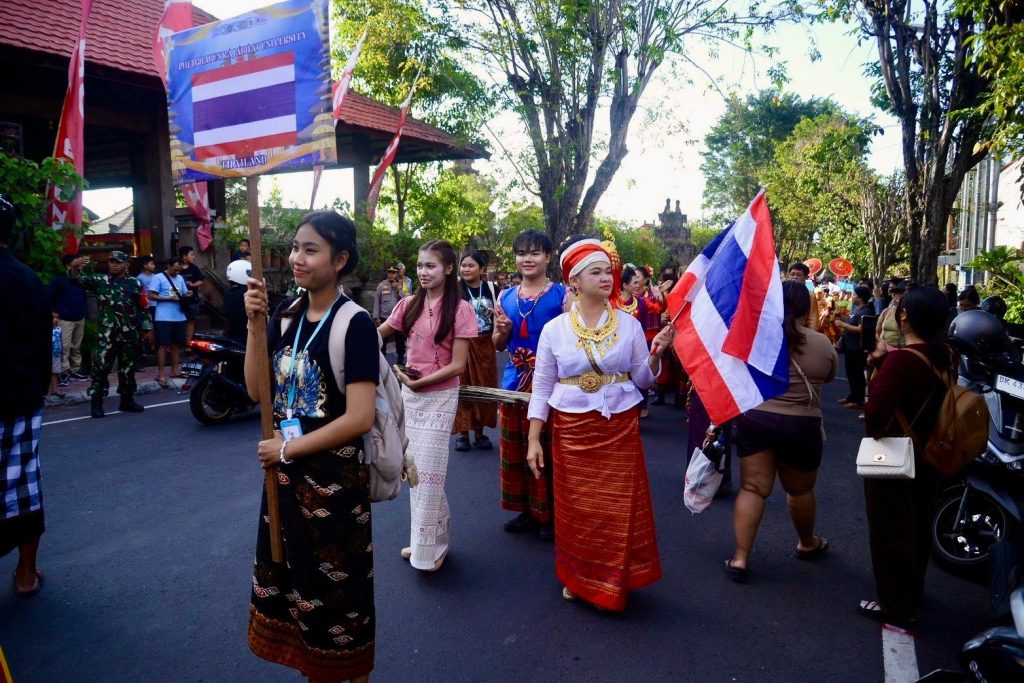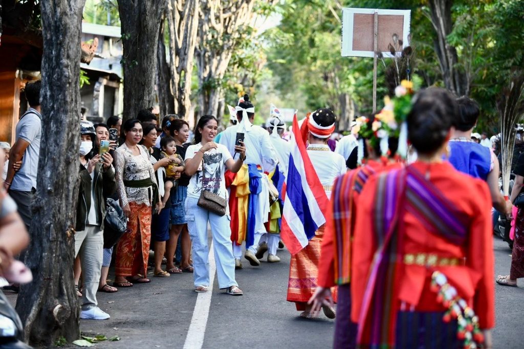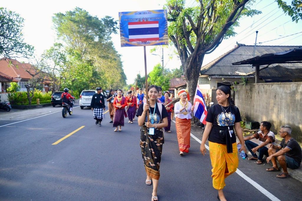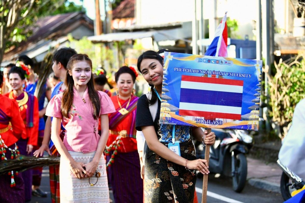 เมื่อวาน (13 มีนาคม 2569) สำนักศิลปะและวัฒนธรรมมหาวิทยาลัยราชภัฏเพชรบูรณ์ ร่วมกับสาขาวิชานาฏศิลป์และศิลปะการแสดง คณะมนุษยศาสตร์และสังคมศาสตร์ นำโดยผู้ช่วยศาสตราจารย์จันทร์พิมพ์ มีเปี่ยม ผู้อำนวยการสำนักศิลปะและวัฒนธรรม พร้อมด้วยรองผู้อำนวยการ บุคลากรสำนักฯ อาจารย์และนักศึกษาสาขาวิชานาฏศิลป์และศิลปะการแสดง คณะมนุษยศาสตร์และสังคมศาสตร์ มหาวิทยาลัยราชภัฏเพชรบูรณ์ ร่วมขบวนแห่เผยแพร่ศิลปวัฒนธรรมในงาน Buleleng International Rhythm Festival 2026 ณ เมืองสิงการาจา เกาะบาหลี สาธารณรัฐอินโดนีเซีย ศูนย์แลกเปลี่ยนวัฒนธรรมระหว่างประเทศ (Center of International Cultural Exchange Promotion : CICEP Thailand) ซึ่งจัดขึ้นระหว่างวันที่ 10–15 มีนาคม พ.ศ. 2569 ภายใต้โครงการเผยแพร่ศิลปะและวัฒนธรรมระดับนานาชาติร่วมกับศูนย์แลกเปลี่ยนวัฒนธรรมระหว่างประเทศ CICEP Thailand ณ สาธารณรัฐอินโดนีเซีย