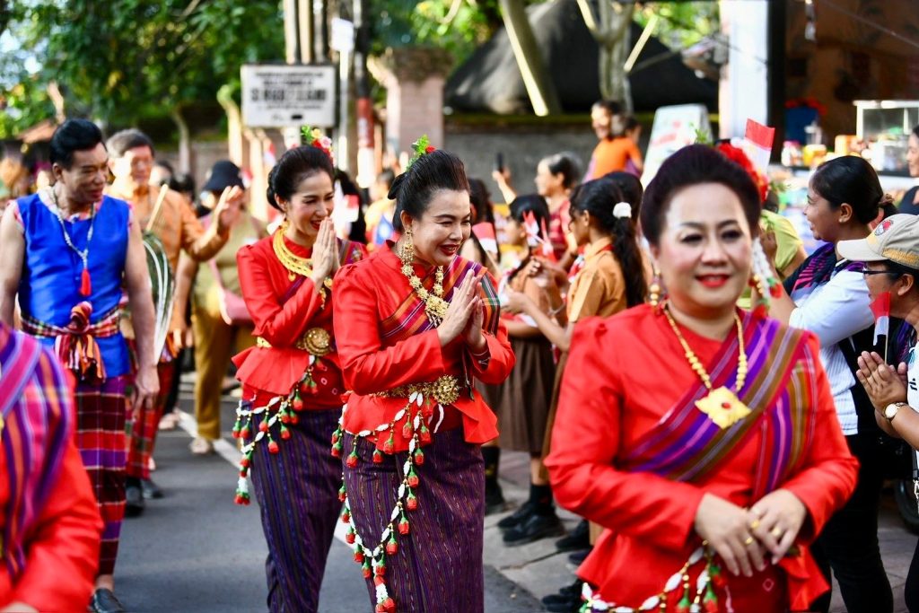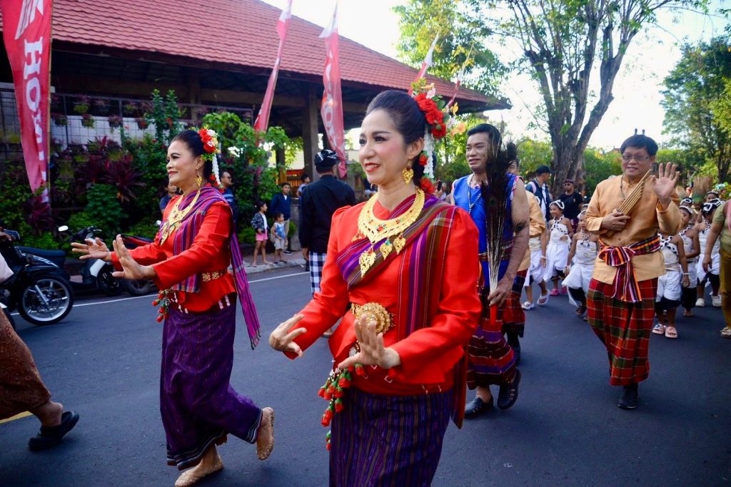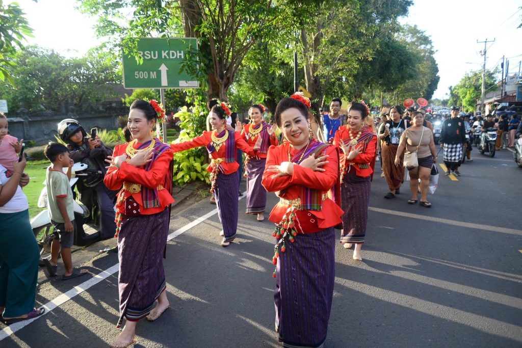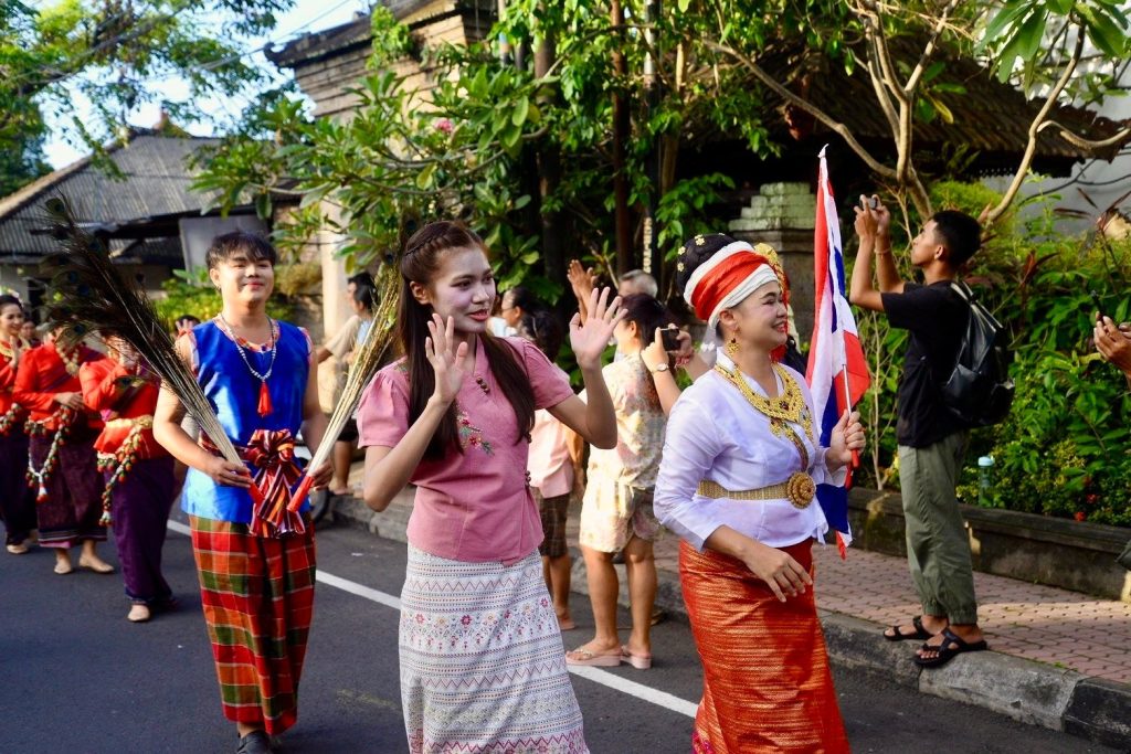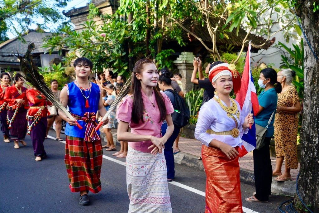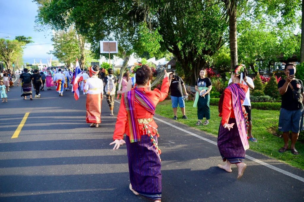 เมื่อวาน (13 มีนาคม 2569) สำนักศิลปะและวัฒนธรรมมหาวิทยาลัยราชภัฏเพชรบูรณ์ ร่วมกับสาขาวิชานาฏศิลป์และศิลปะการแสดง คณะมนุษยศาสตร์และสังคมศาสตร์ นำโดยผู้ช่วยศาสตราจารย์จันทร์พิมพ์ มีเปี่ยม ผู้อำนวยการสำนักศิลปะและวัฒนธรรม พร้อมด้วยรองผู้อำนวยการ บุคลากรสำนักฯ อาจารย์และนักศึกษาสาขาวิชานาฏศิลป์และศิลปะการแสดง คณะมนุษยศาสตร์และสังคมศาสตร์ มหาวิทยาลัยราชภัฏเพชรบูรณ์ ร่วมขบวนแห่เผยแพร่ศิลปวัฒนธรรมในงาน Buleleng International Rhythm Festival 2026 ณ เมืองสิงการาจา เกาะบาหลี สาธารณรัฐอินโดนีเซีย ศูนย์แลกเปลี่ยนวัฒนธรรมระหว่างประเทศ (Center of International Cultural Exchange Promotion : CICEP Thailand) ซึ่งจัดขึ้นระหว่างวันที่ 10–15 มีนาคม พ.ศ. 2569 ภายใต้โครงการเผยแพร่ศิลปะและวัฒนธรรมระดับนานาชาติร่วมกับศูนย์แลกเปลี่ยนวัฒนธรรมระหว่างประเทศ CICEP Thailand ณ สาธารณรัฐอินโดนีเซีย