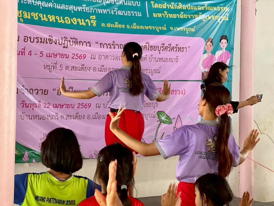 เมื่อวานนี้ (5เมษายน 2569) สำนักศิลปะและวัฒนธรรม มหาวิทยาลัยราชภัฏเพชรบูรณ์ จัดกิจกรรมอบรมเชิงปฏิบัติการ “การรำถวายองค์ไชยบุรีศรีศรัทธา” ซึ่งเป็นวันที่ 2 ของการอบรม ณ อาคารอเนกประสงค์ บ้านหนองนารี ภายใต้โครงการส่งเสริมสืบสานอัตลักษณ์ชุมชนต้นแบบ เพื่อยกระดับคุณค่าและสุนทรียภาพทางวัฒนธรรม ณ ชุมชนหนองนารี ตำบลสะเดียง อำเภอเมืองเพชรบูรณ์ จังหวัดเพชรบูรณ์